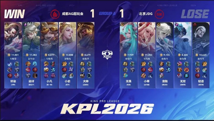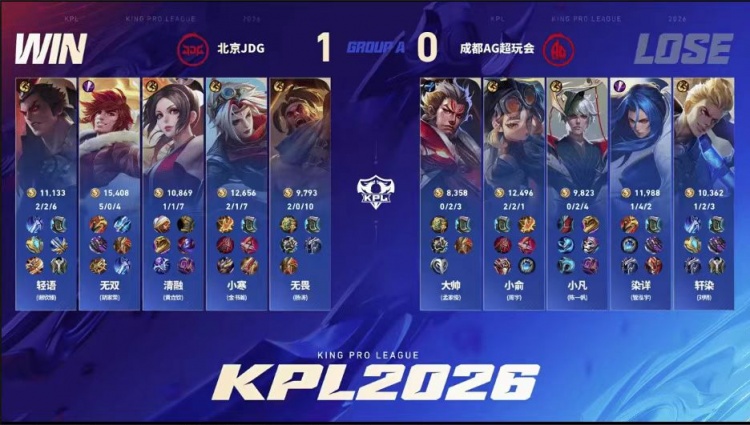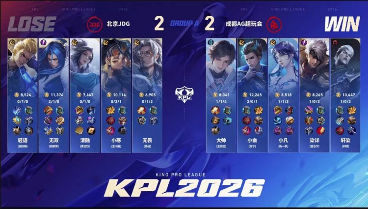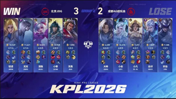 直播吧2月13日讯 2026KPL春季赛本场比赛是由成都AG超玩会对阵到北京JDG!