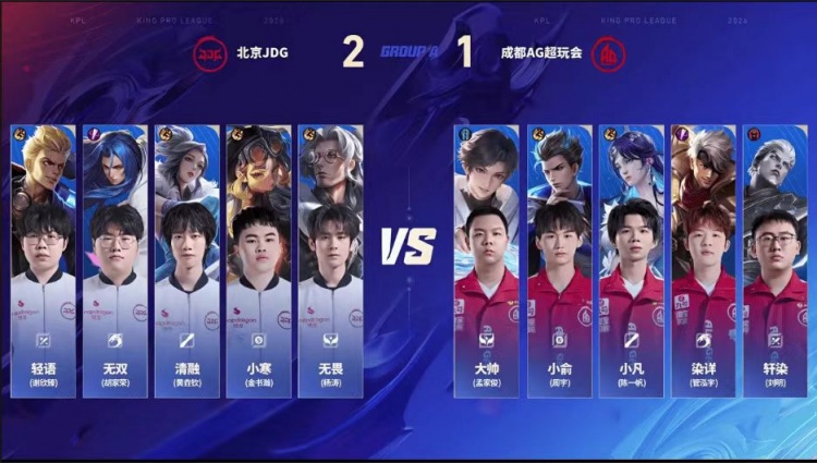 第一局:清融不知火舞依旧能C JDG轻松拿下首局!第二局:大帅的硬辅值得信任 大帅苏烈节奏发动扳平比分!第三局:无双元坦能抗能开 JDG先拿赛点!第四局:苟住发育终取胜 AG扳平比分将比赛拖入决胜局!第五局:清融小乔节奏频出高输出拿下AG