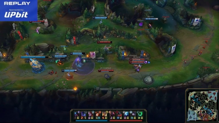 第四局前期Career锤石配合Smash厄斐琉斯下路拿到一血,Chovy阿萝拉中路越塔击杀许哥冰鸟,紧接着Canyon梦魇关灯再杀许哥。随后Kiin雷克塞上路旅洞cosBin哥被Siwoo赛恩单杀。