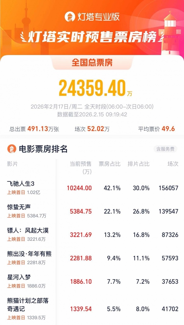 >一马当先!《飞驰人生3》上映首日预售票房已突破1亿