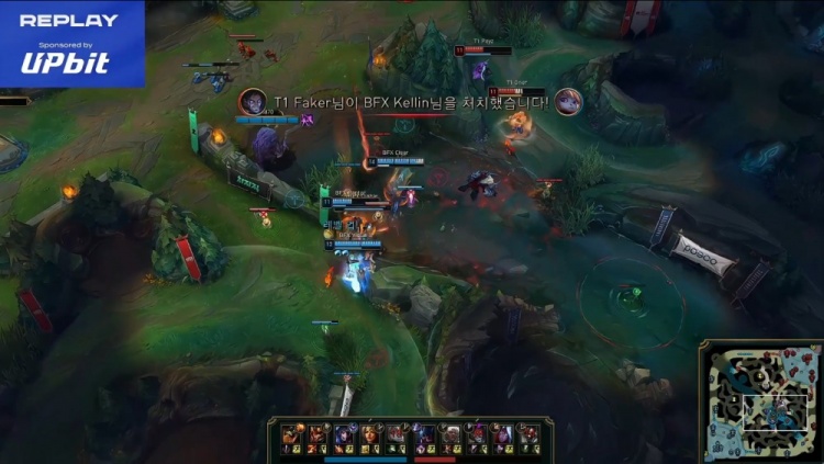 【22:52】下路Clear鳄鱼与Faker单挑,鳄鱼死刑宣告在手单杀Faker,BFX经济领先1k。