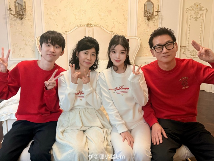 >Doinb妻子糖小幽分享新年合照:和韩国公婆在中国过春节🥰