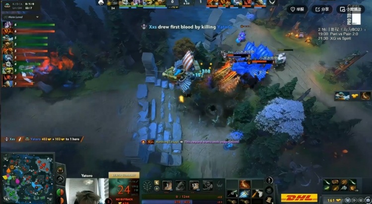 首局比赛双方平稳发育,7分钟XG线杀Yatoro飞机拿到一血!中期XG掌握局势主动,Spirit则是连续让Yatoro飞机发育想憋后期!XG连续gank+团战强杀Collapse人马,Fy毒狗则是关留人+连续两次团战保住了被集火的NTS火猫没让他被强杀!XG一波上路经验符团战+中路团让Collapse人马买活死之后控下二代盾拉开经济差!Mirele紫猫毫无存在感啊!最终XG拆完三路高地,秒掉Yatoro飞机先拿一分!