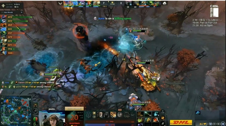 【11分钟】Ame小黑支援上路,配合Xxs大鱼人+Fy风行双留人逮捕了Yatoro龙骑士+panto百戏大王!这波0换2打完XG已经拿到了4K经济优势了!
