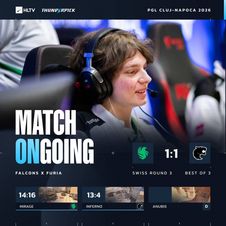 直播吧2月17日讯 PGL克卢日纳波卡继续进行,今日2-0组晋级战,由猎鹰Falcons对阵黑豹FURIA!