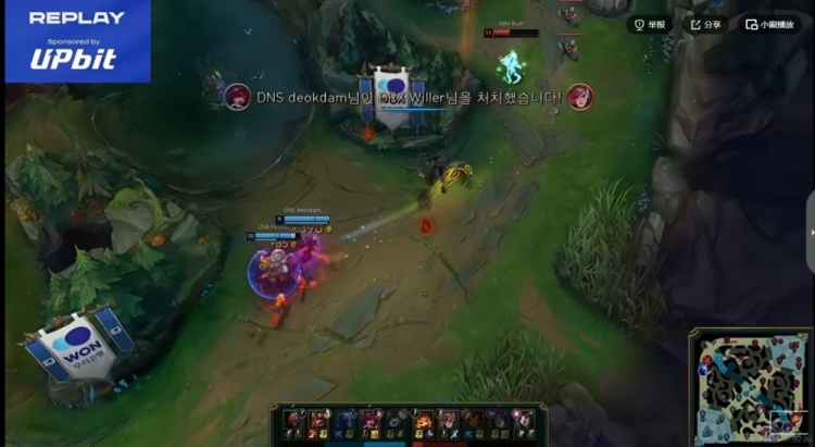 【19:20】野区Willer蔚找到了deokdam霞先逼出大招,ucal岩雀封路配合Andil妮蔻大招直接将霞强杀!这波打完DRX拆掉DNS上一塔,完成了经济反超!