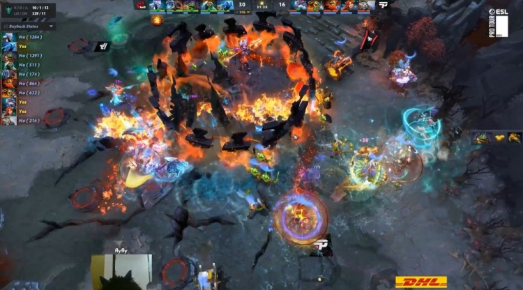 后期上路YB没能抓掉DarkMago电魂,paiN中路推进盾换YB高地塔。YB主动开雾找人开团,Frank潮汐空大,飞飞蚂蚁爆轰四杀,YB打出1换5团灭paiN,YB拿到魔晶经济反超7k。但随后YB中路推进惨遭Frank潮汐大三人,paiN打出0换5团灭YB,paiN冲上YB高地,YB众人买活,boboka小小留人双方2换2,YB趁机控掉四代肉山,飞飞蚂蚁带盾。