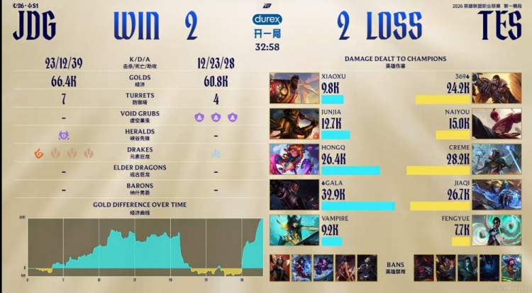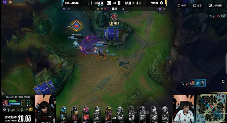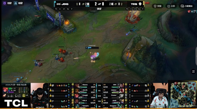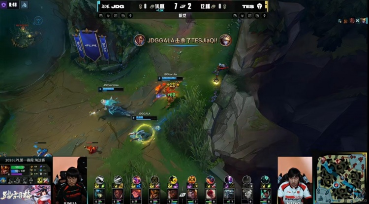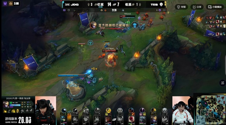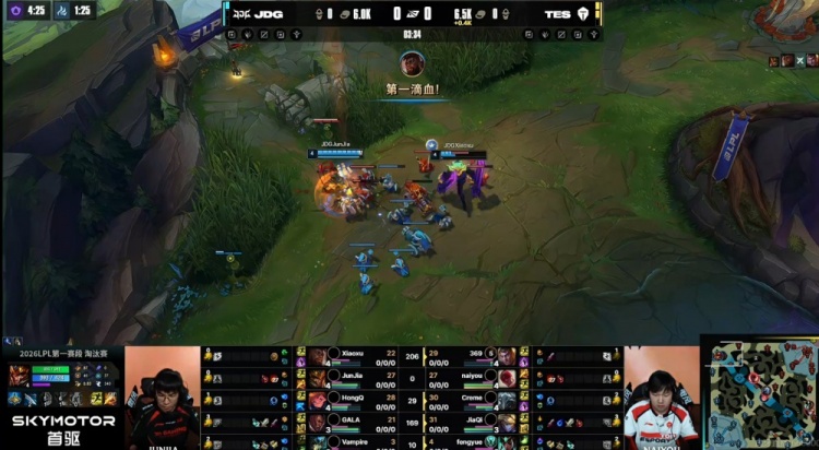 直播吧2月24日讯 2026年LPL第一赛段进入季后赛阶段,今天的首场比赛是JDG对阵TES!