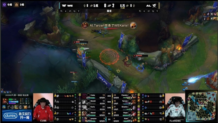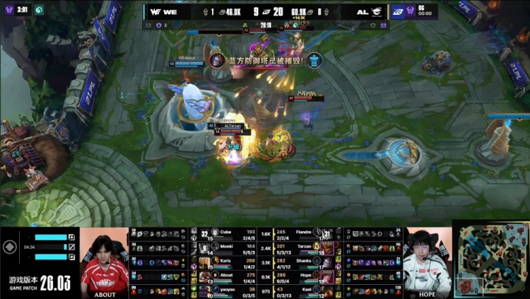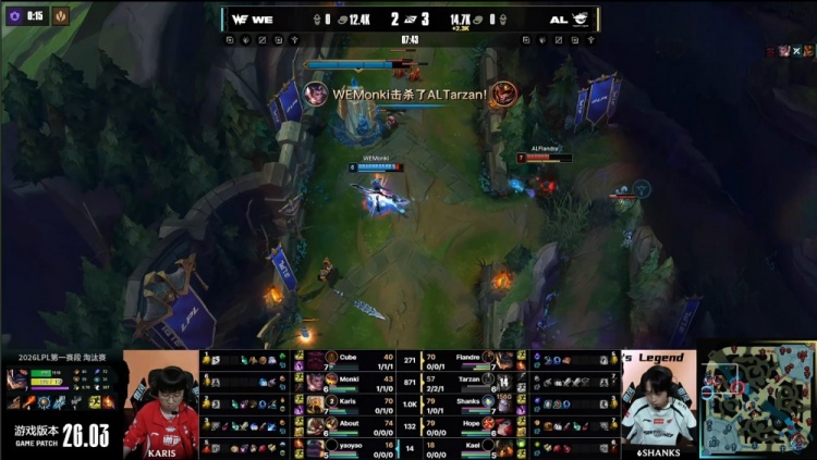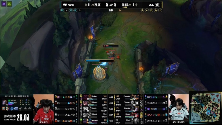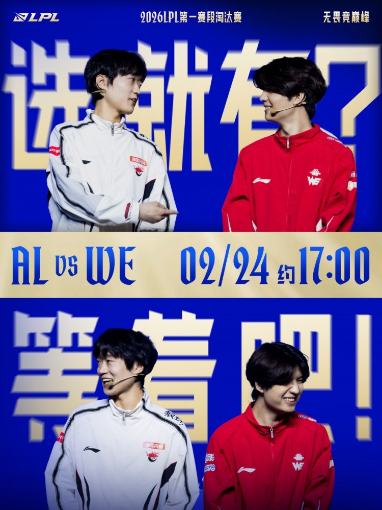 直播吧2月24日讯 2026LPL第一赛段淘汰赛继续进行,今日第二场比赛由AL对阵WE!