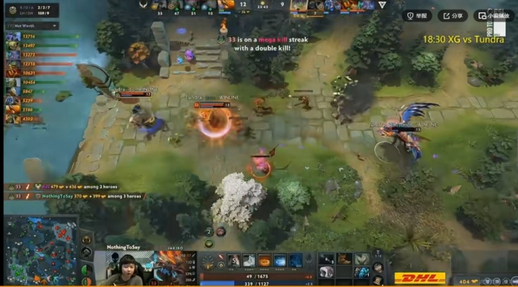 【12分钟】中路Tundra冲塔白给,塔后的Pure虚空先罩大了个Fy百戏的幻象,随后想TP被Fy百戏大王断掉直接白给!这波XG打出0换2,领先2K了!