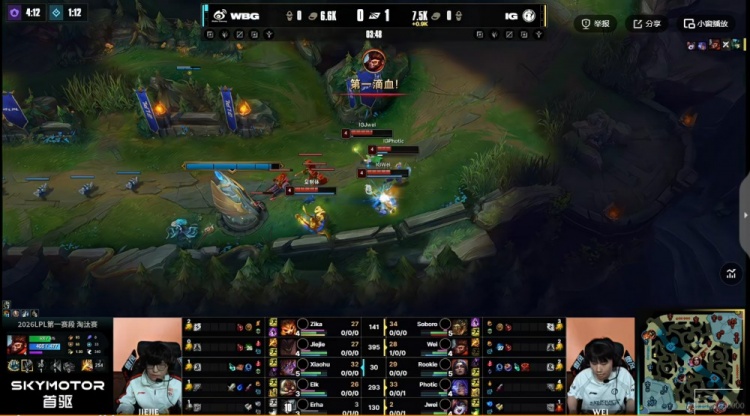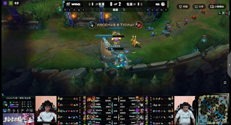 直播吧2月25日讯 2026年LPL第一赛段进入季后赛阶段,今天的首场比赛是iG对阵WBG!