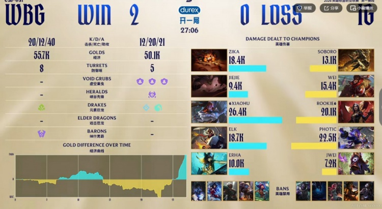 WBG:上单Zika、打野Jiejie、中单Xiaohu、下路Elk、辅助Erha