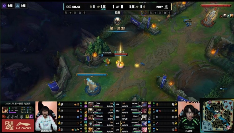 直播吧2月25日讯 2026LPL第一赛段淘汰赛继续进行,今日第二场比赛由BLG对阵NIP!