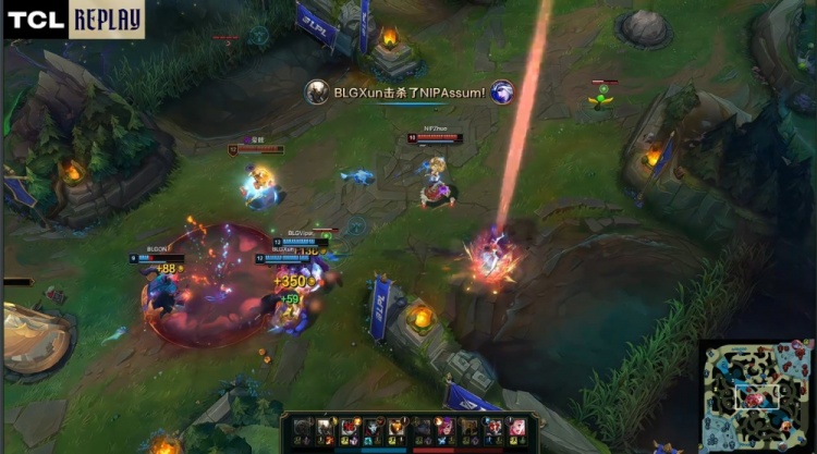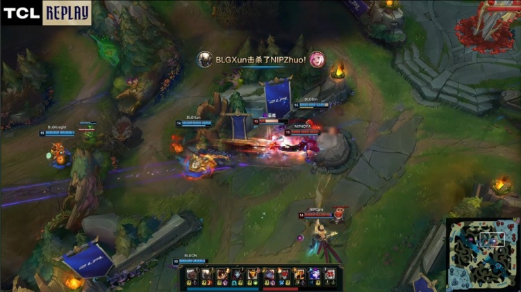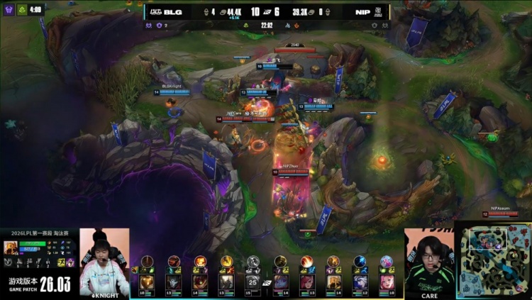 【22:26】NIP中路三人推进,Xun潘森跳大落地瞬间融化Assum艾希,BLG经济领先4.3k。