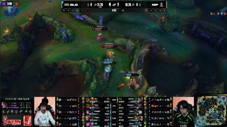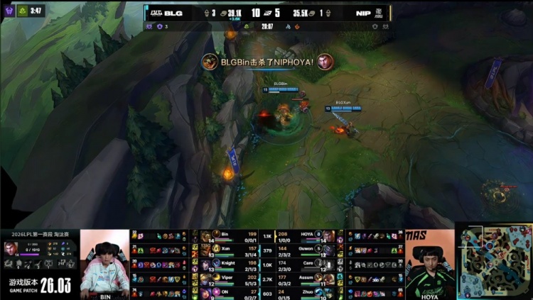 直播吧2月25日讯 2026LPL第一赛段淘汰赛继续进行,今日第二场比赛由BLG对阵NIP!