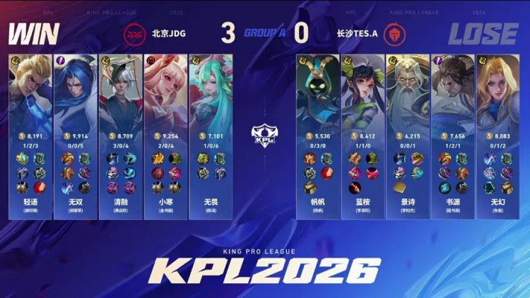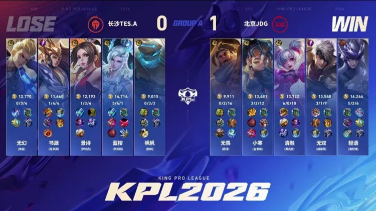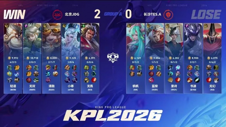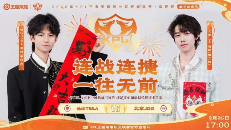 直播吧2月25日讯 2026KPL春季赛本场比赛是由长沙TES.A对阵到北京JDG