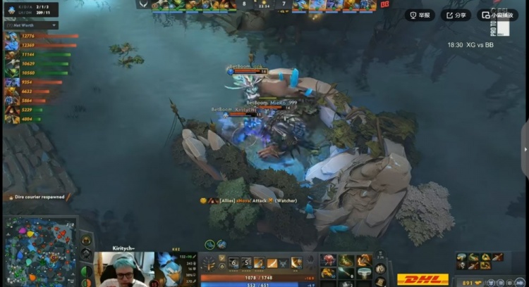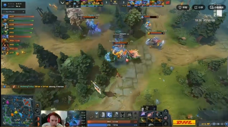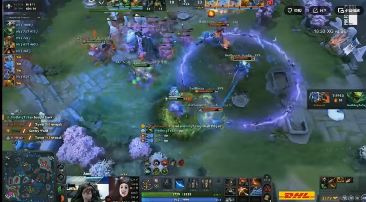 【14分钟】XG下路又想拆塔又想去抢经验符,结果gpk帕克捆住Ame斯温,残局NTS毒龙也被追死!这波BB直接强杀XG双大哥,一波0换2拿下经济领先!