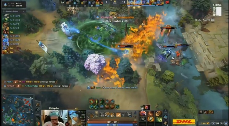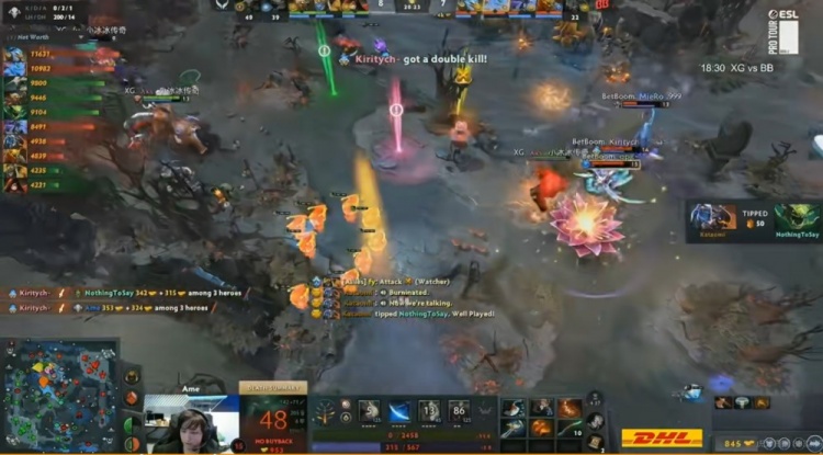 第二局XG最后一手给Ame选出大哥斯温,前期双方平稳发育,但XG小优的局势下,在下路一波想要又要结果被BB反手击杀自家双大哥,带着赏金标记BB一波拉开5K经济差!加上这一波Ame斯温连续阵亡三次断了发育节奏!BB也不急着推进,让双大哥凯+帕克无限发育经济持续领先,团战端Ame斯温进场就被kiritych凯拉扯和反杀完全打不过!NTS的毒龙也感觉没什么熟练度!BB慢慢憋到经济差拉开两万多,再带盾上高逐个击破+拆完三路高地!扳平比分!