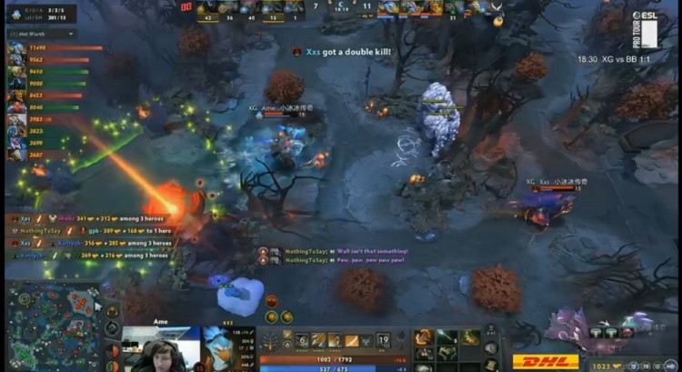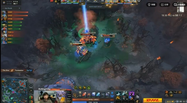 决胜局XG选出双大哥绝活凯+修补匠前期无解发育,BB完全不给压力,中期发育成型的双核配合队友控制团战随便打随便赢,18分钟XG先是下路团灭BB拉开经济差,随后拿下魔晶之后又打出1换3让NTS修补匠带盾!此后XG连续扫图抓单,kiritych亚巴顿在XG的输出+控制面前像个纯木桩连续被抓!最终XG拿下二代盾高地团团灭BB,决胜局碾压击败对手,拿下二阶段小组赛的第三胜!