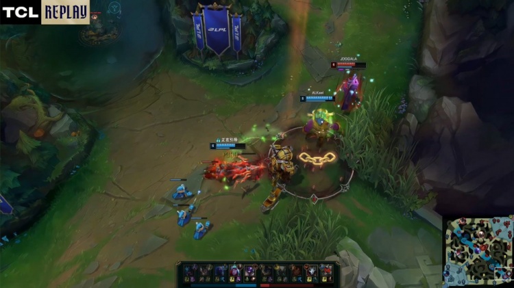【5:47】上河道河蟹团,Tarzan赵信先捅飞Junjia潘森,龙坑之中Flandre雷克塞与Tarzan先处理掉HongQ岩雀,Xiaoxu兰博1v2送Flandre雷克塞双杀,AL打出0换3。