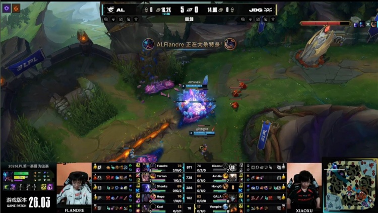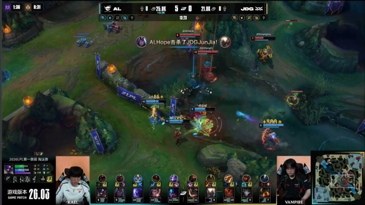 直播吧2月26日讯 2026LPL第一赛段淘汰赛继续进行,今日焦点大战由AL对阵JDG!