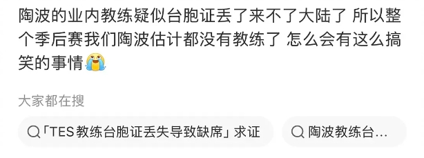 >还有这种事?TES主教练Poppy疑似台胞证丢失无法返回大陆 或缺席季后赛