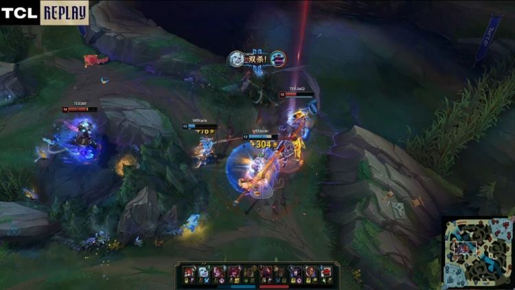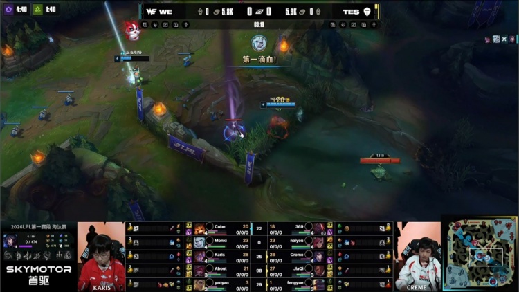 【9:01】河道团战,fengyue布隆大招击飞Cube大纳尔,后者反手拍TES两人上墙,Cube难逃一死与fengyue互换,naiyou蔚被Monki佛耶戈大招砍下拿到人头,WE打出1换2。