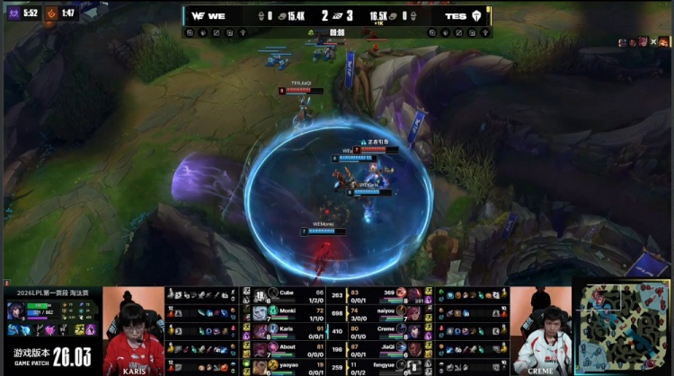 直播吧2月28日讯 2026LPL第一赛段淘汰赛败者组第一轮,由WE对阵TES!