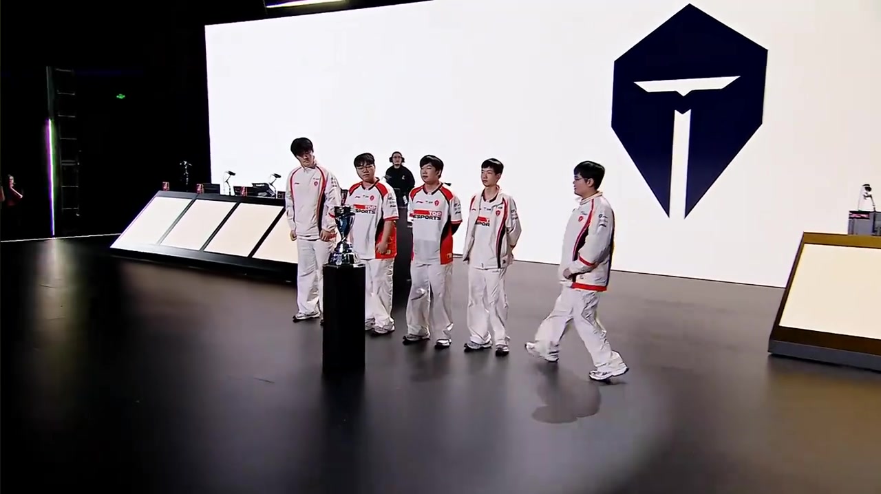 >第一颗!369将WE的龙魂晶石镶嵌在了第一赛段奖杯底座上