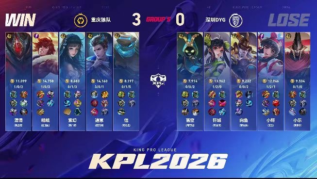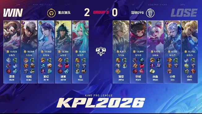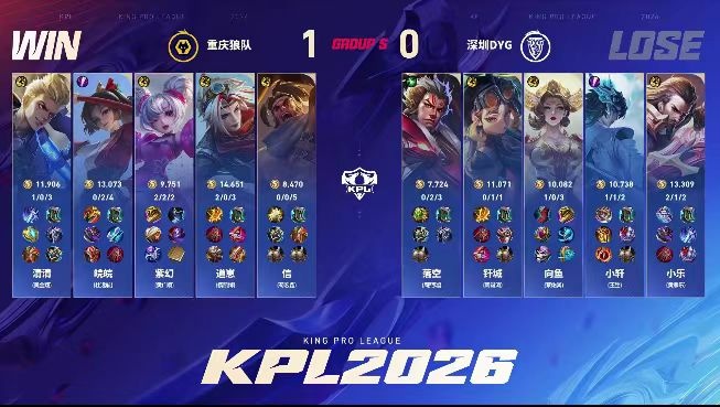 直播吧2月28日讯 2026KPL春季赛本场比赛是由重庆狼队对阵到深圳DYG!
