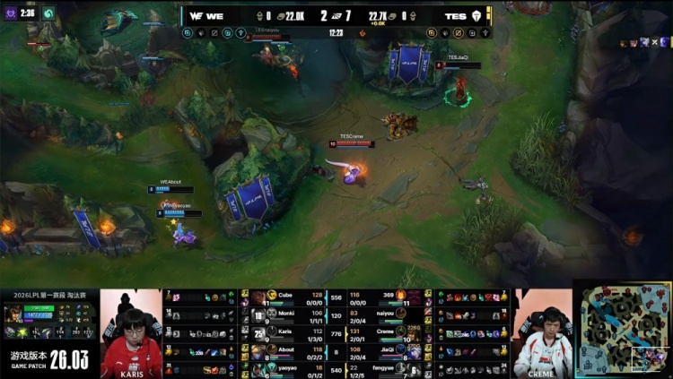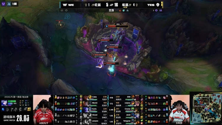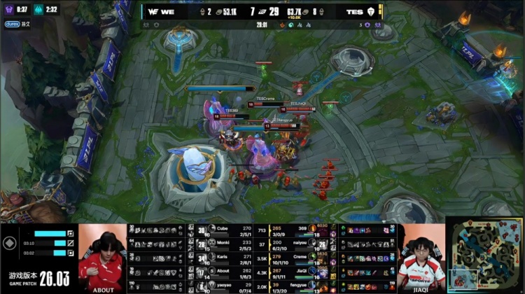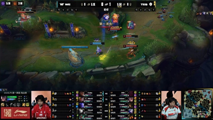 直播吧2月28日讯 2026LPL第一赛段淘汰赛败者组第一轮,由WE对阵TES!