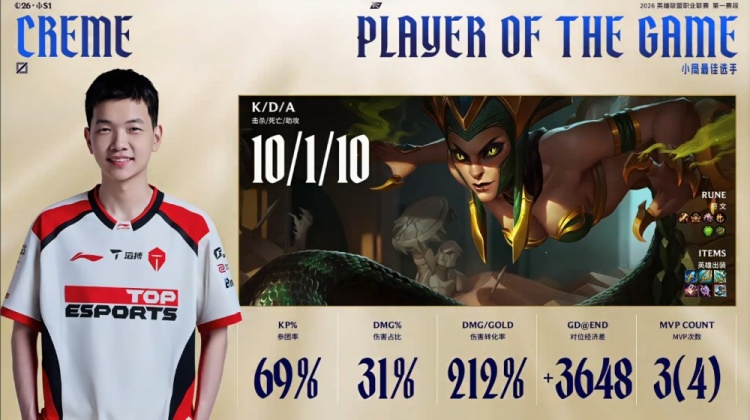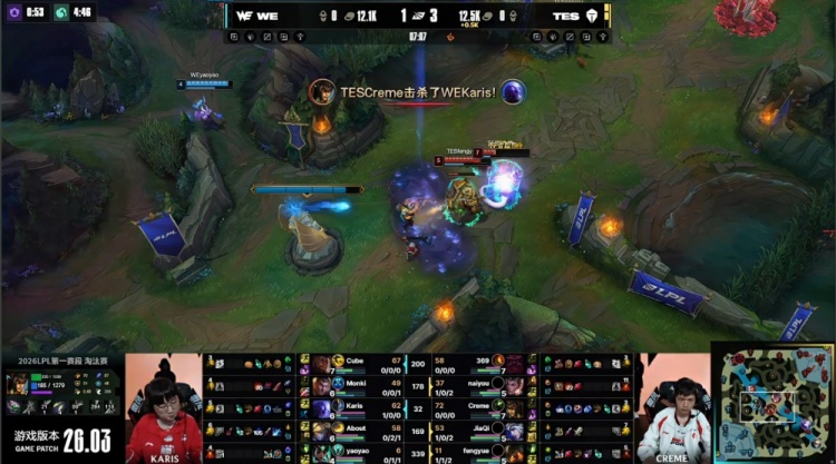 第一局:🎮naiyou潘森全场爆抓 Creme永恩双剑单杀WE双射手 TES赢首局