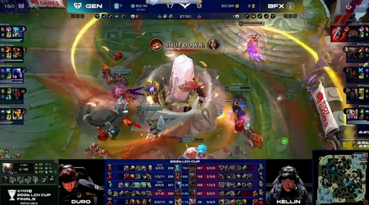 直播吧3月1日讯 2026年LCK杯进入最终决赛阶段,最终决赛将是GEN和BFX的又一次对拼,胜者就是LCK杯冠军!