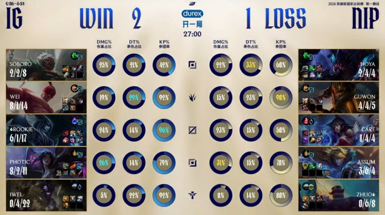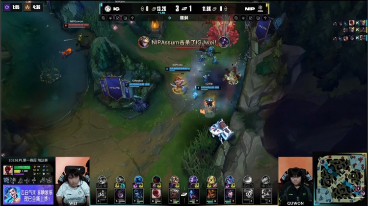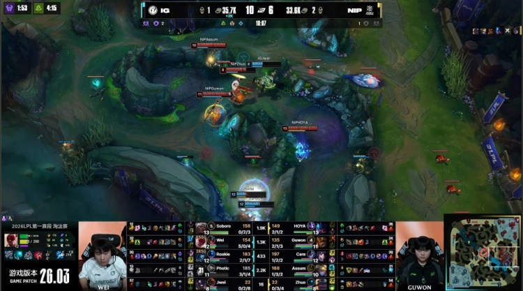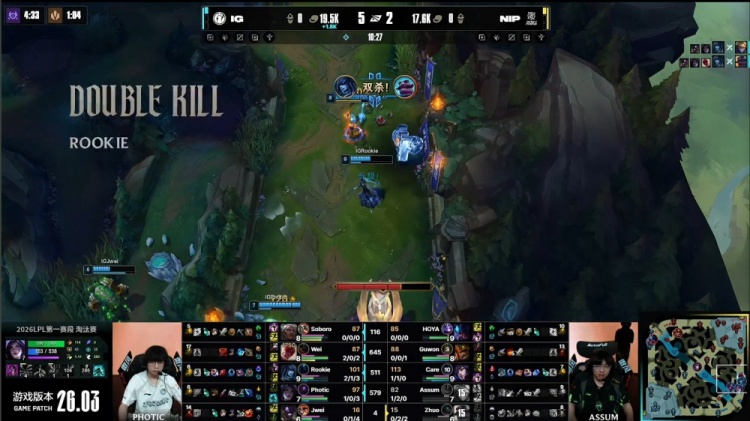 直播吧3月1日讯 2026LPL第一赛段淘汰赛继续进行,今日败者组比赛由iG对阵NIP!