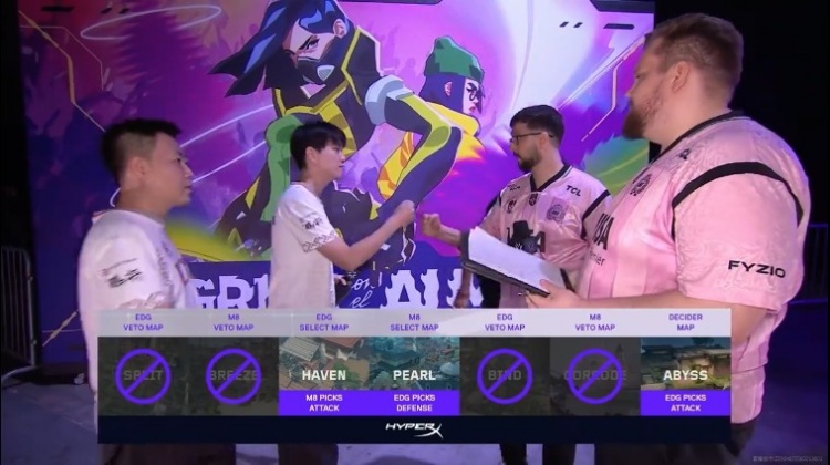 第十六局:EDG双人边线各收下一人后选择进攻B点,但是M8在点内接住两人,随后EDG无法进点被M8架住,M8拿下胜利!