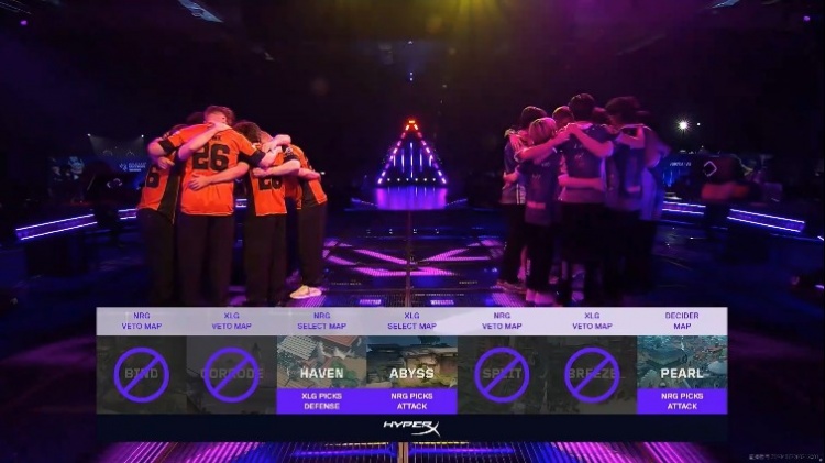 第一局:NRG开局进攻B点成功收下三人,XLG两人回防面对2打4残局被NRG拿下胜利!