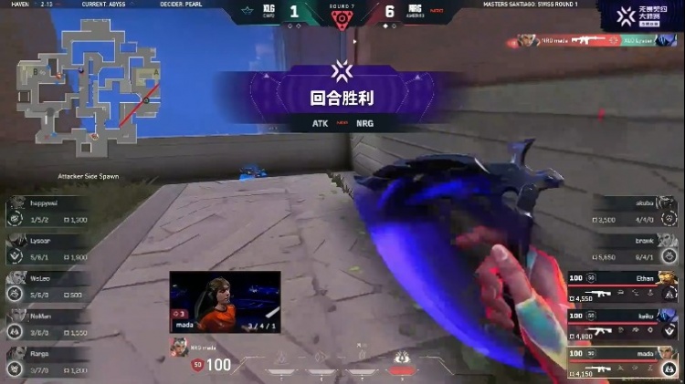 第十六局:XLG直接rush进B点,NRG在点内被收下两人,XLG五打三残局成功拿下胜利!