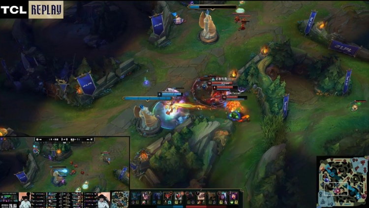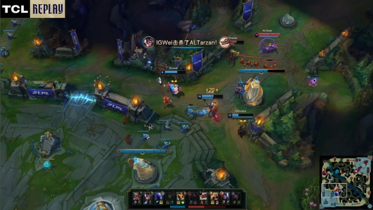 【20:23】AL下路推进,Rookie瑞兹走位失误被王杰韦鲁斯射掉,AL打出0换3,推掉iG下路二塔,经济领先接近1w。