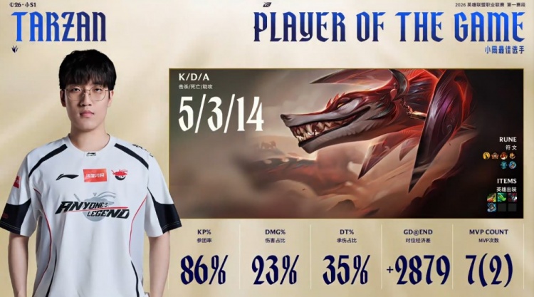 中期AL中路推进,Hope韦鲁斯远射击杀Jwei巴德,AL打出1换4,经济扩大到5.6k。后续Shanks沙皇单杀Rookie瑞兹,先锋被Tarzan冥犬抢下,双方互换人头后,AL经济优势来到6k以上。