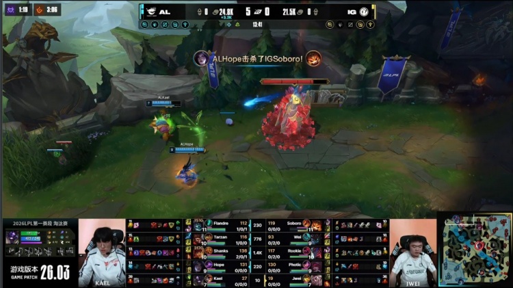 直播吧3月3日讯 2026LPL第一赛段淘汰赛败者组的比赛,由iG对阵AL!