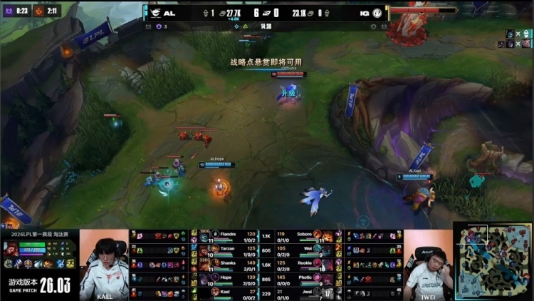 【6:09】iG三人去上越塔失败,Wei茂凯抗塔致死送Flandre掘墓人头,AL经济领先1.2k。