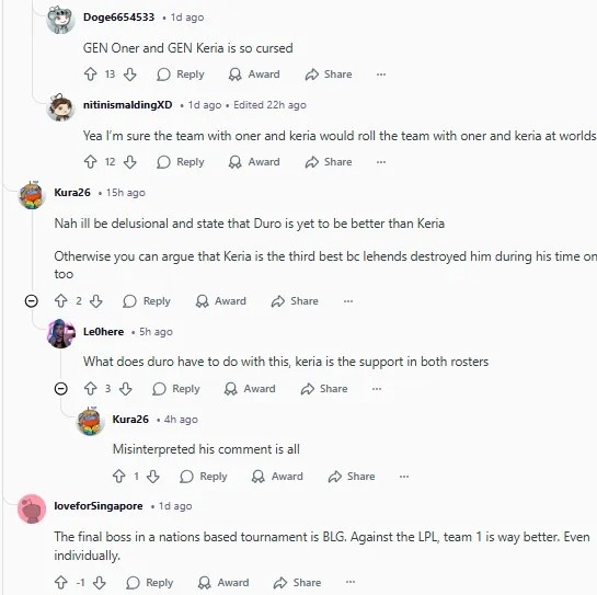 是啊,我确信那支带了Oner和Keria的队,绝对能把另一支也带了Oner和Keria的队在世界赛上吊起来打。
