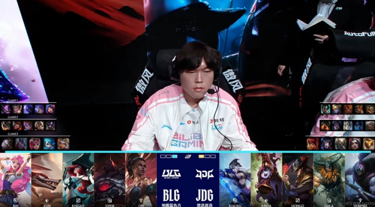 BLG:上单Bin、打野Xun、中单knight、下路Viper、辅助ON