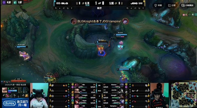 第二局:🎮Junjia梦魇尽力了!Bin兰博knight兔子团战无解 BLG扳平比分
