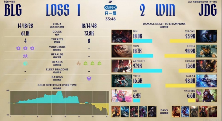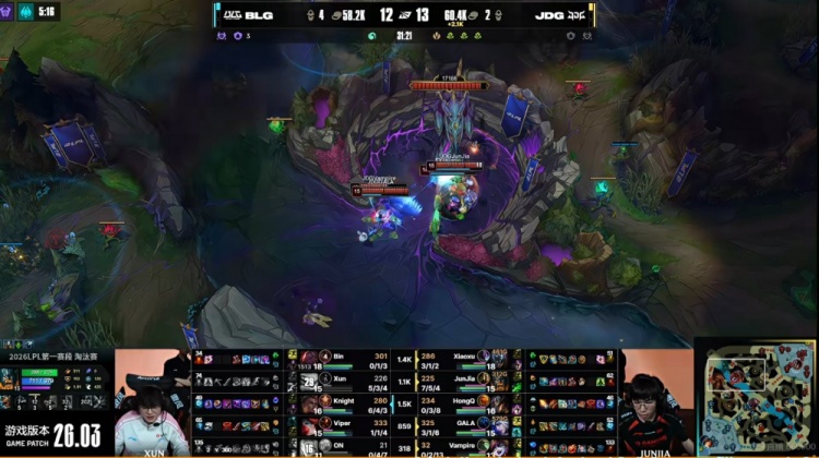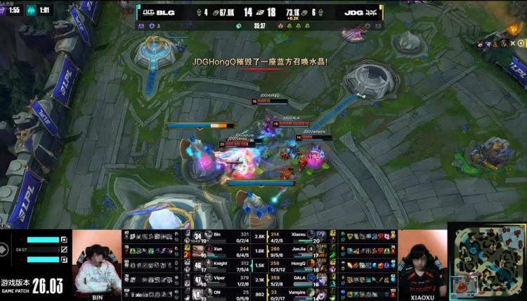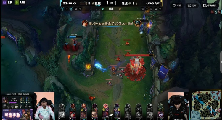 直播吧3月4日讯 2026年LPL第一赛段季后赛今天将进行胜者组决赛,JDG和BLG的胜者将拿下LPL赛区第一个先锋赛名额!