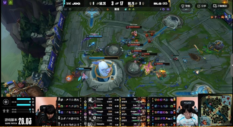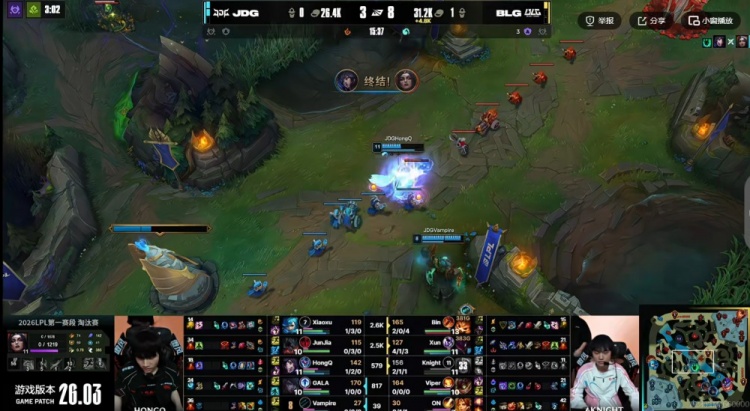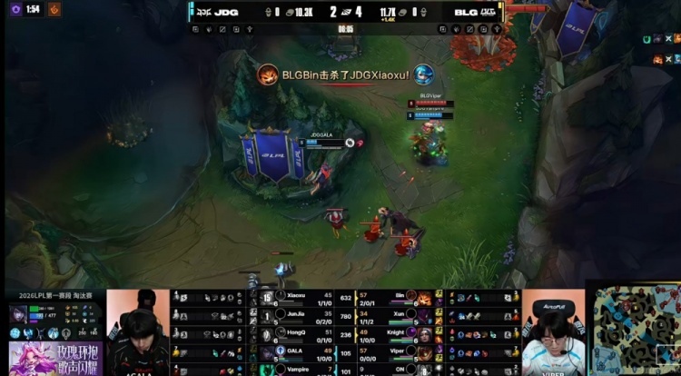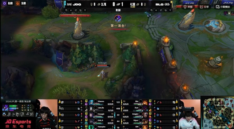 直播吧3月4日讯 2026年LPL第一赛段季后赛今天将进行胜者组决赛,JDG和BLG的胜者将拿下LPL赛区第一个先锋赛名额!