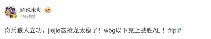 >米勒:奇兵狼人立功,jiejie这抢龙太稳了!wbg以下克上战胜AL!