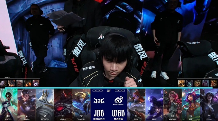 JDG:Xiaoxu、JunJia、HongQ、GALA、Vampire
