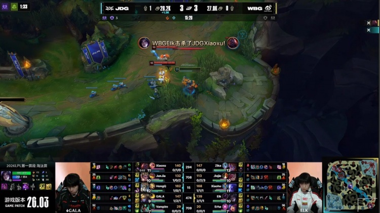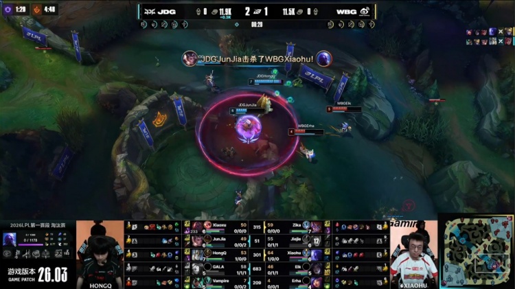 直播吧3月7日讯 2026LPL第一赛段淘汰赛败者组决赛,由JDG对阵WBG!