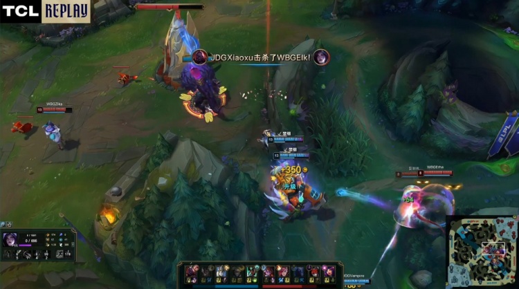 【12:20】Xiaoxu赛恩下路被Elk卡莎单杀,WBG经济劣势1k。